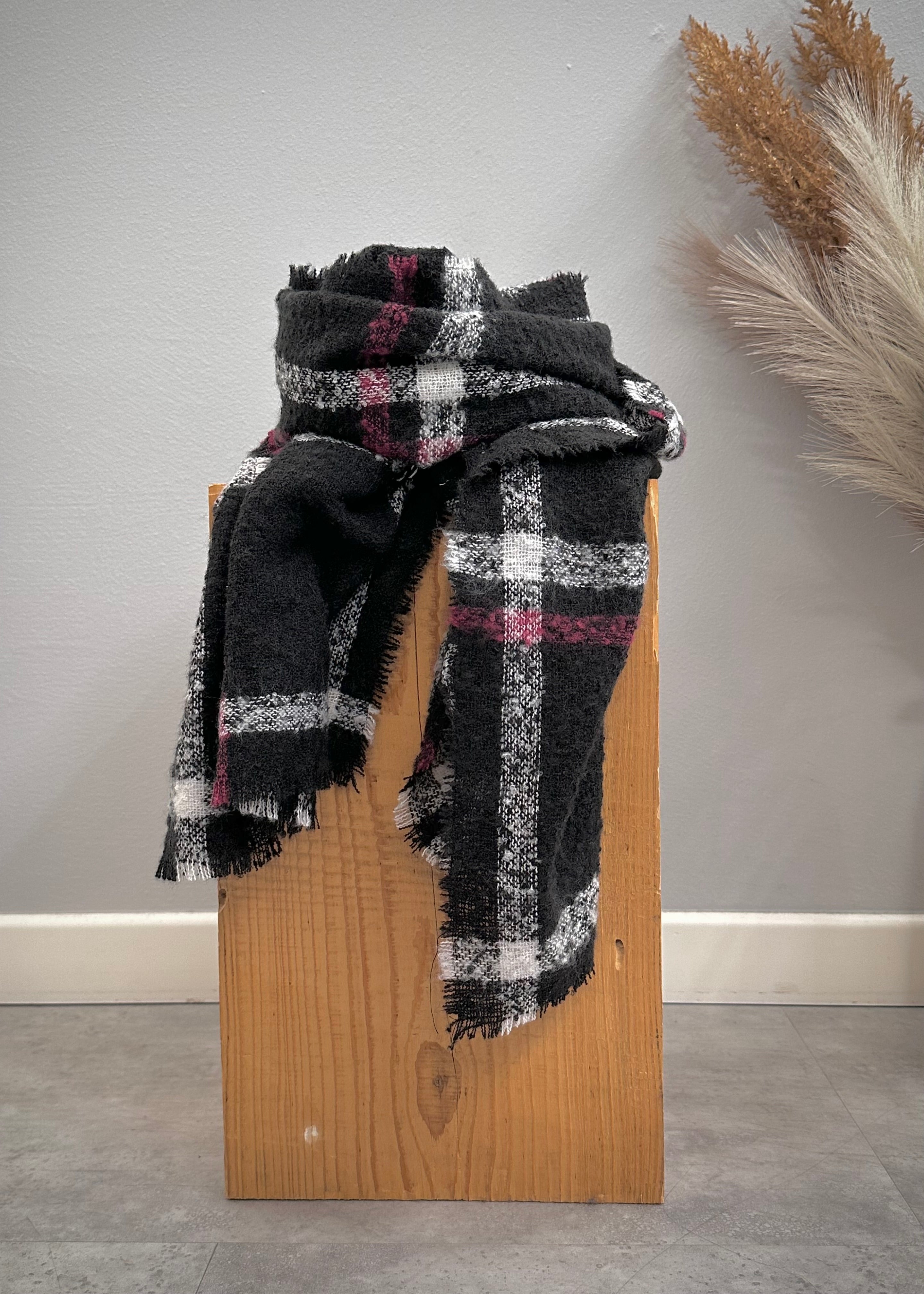 Sciarpa a quadri sui toni del nero bordeaux bianco accessorio unisex
