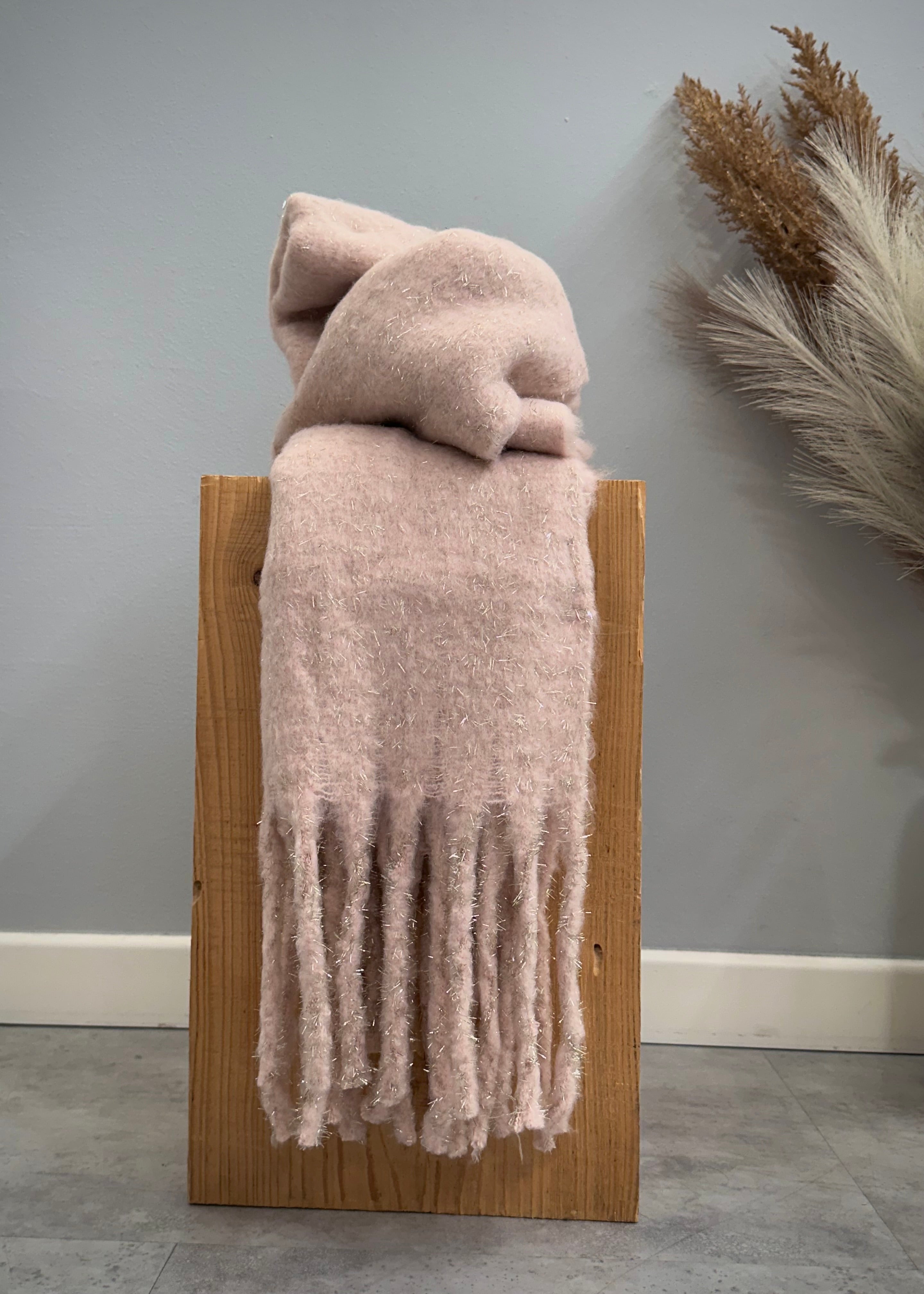 Sciarpa boucle con lurex panna e rosa accessorio femminile