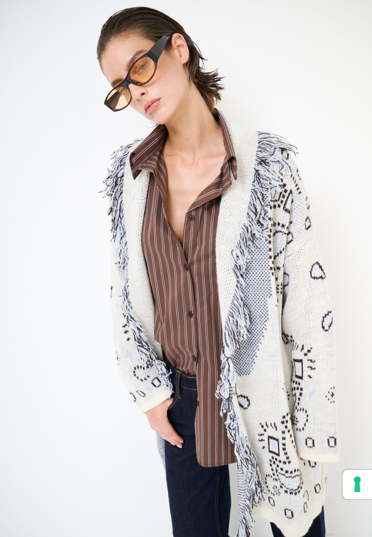 Giacca kimono Kikisix in maglia color sabbia: eleganza e comfort. Perfetta per ogni look, con cintura per valorizzare la silhouette. Un capo versatile e chic per la donna moderna.
