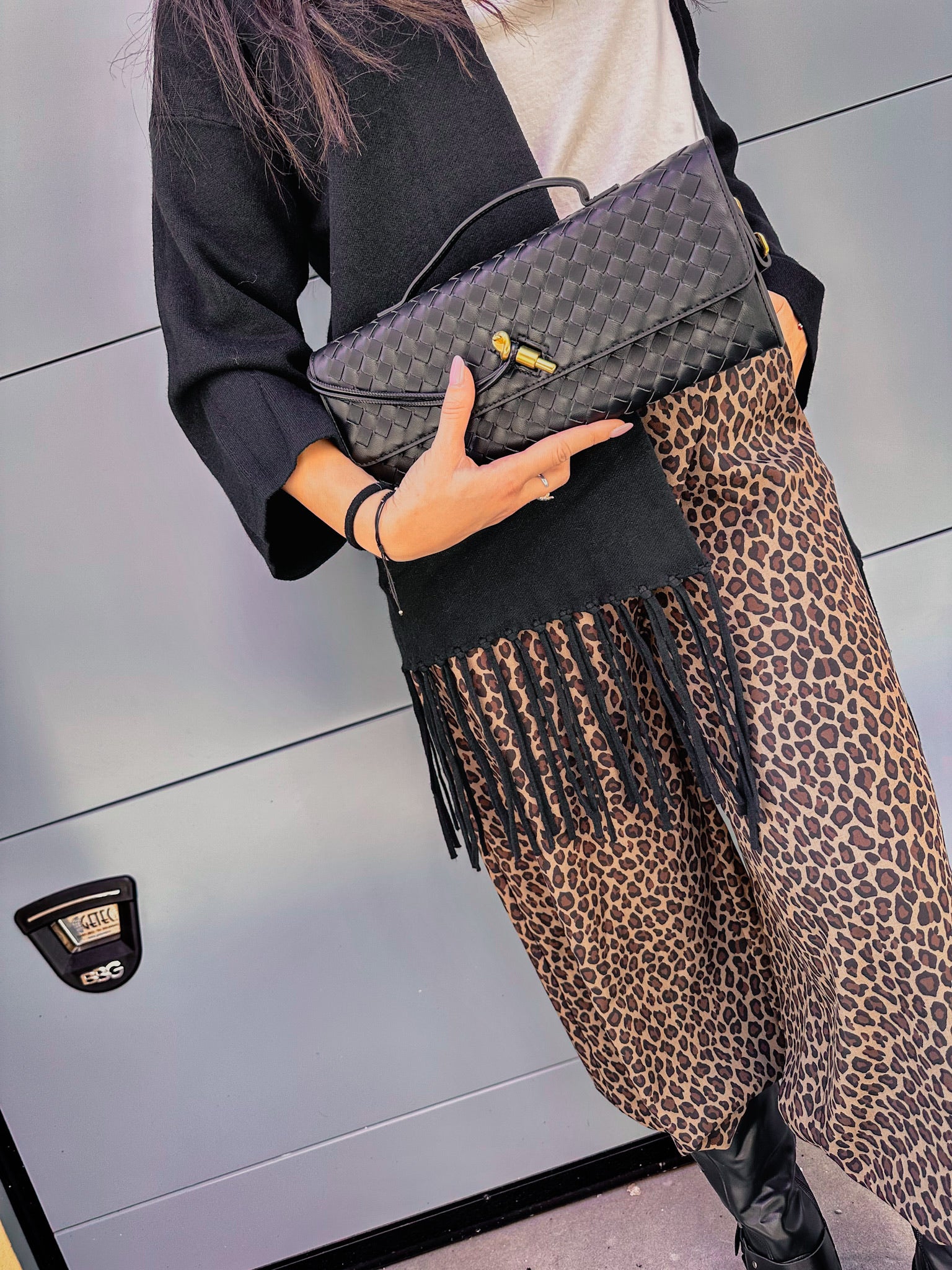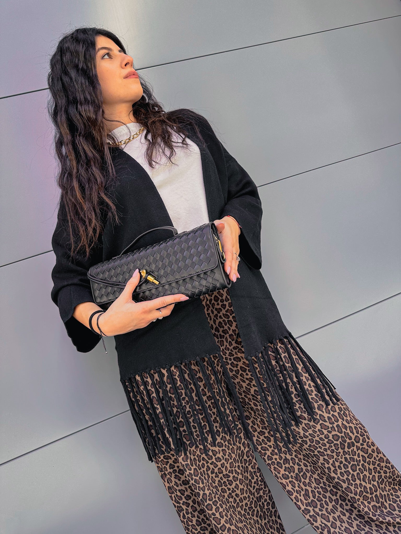 KIKISIX CARDIGAN DONNA NERO CON FRANGE