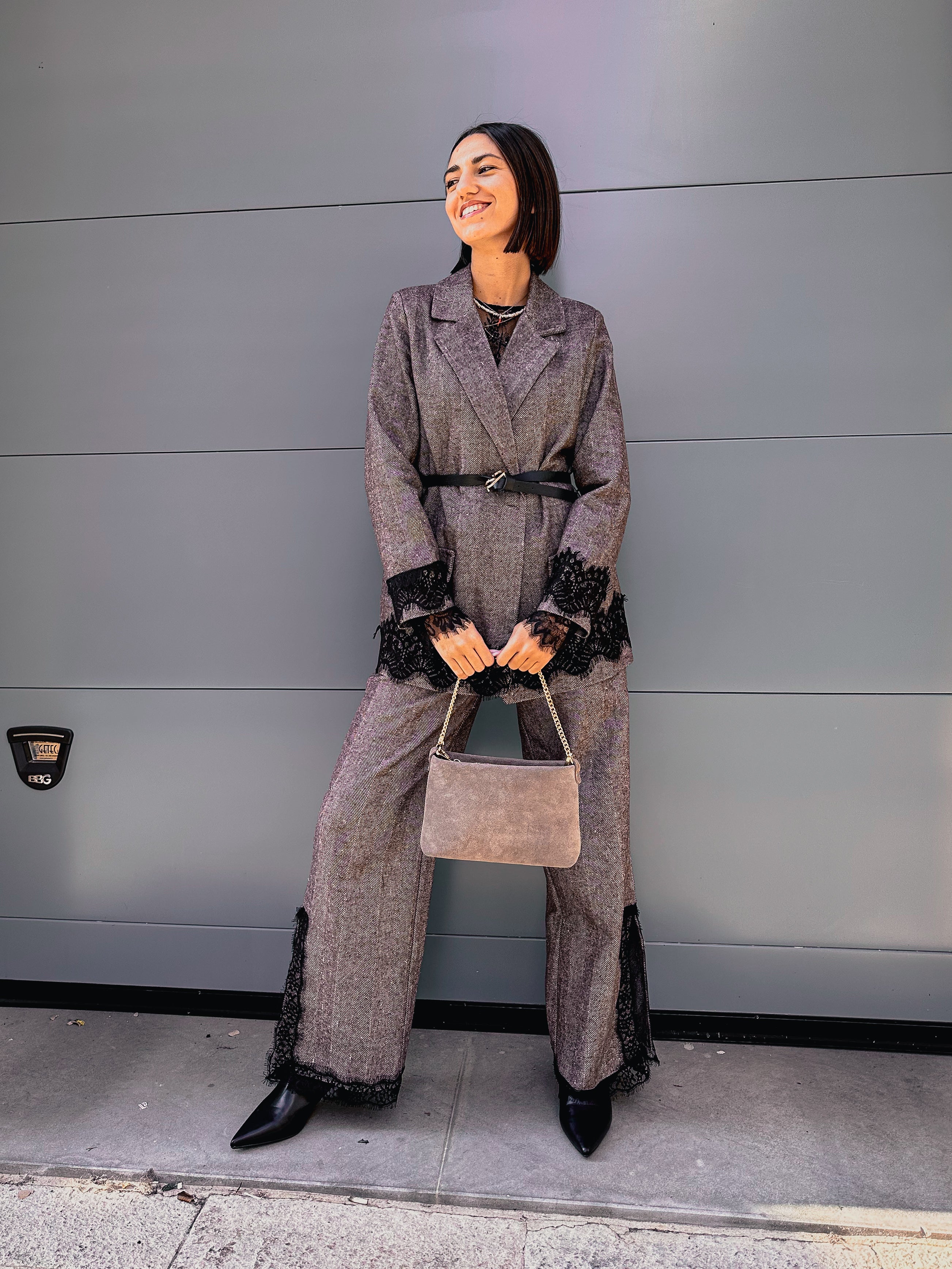 spallina rinforzata dettagli pizzo nera nella manica e sul fondo chiusura frontale con bottone