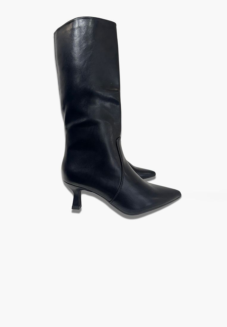 Stivale nero donnna a punta  tacco 5 cm chiusura zip lato interno