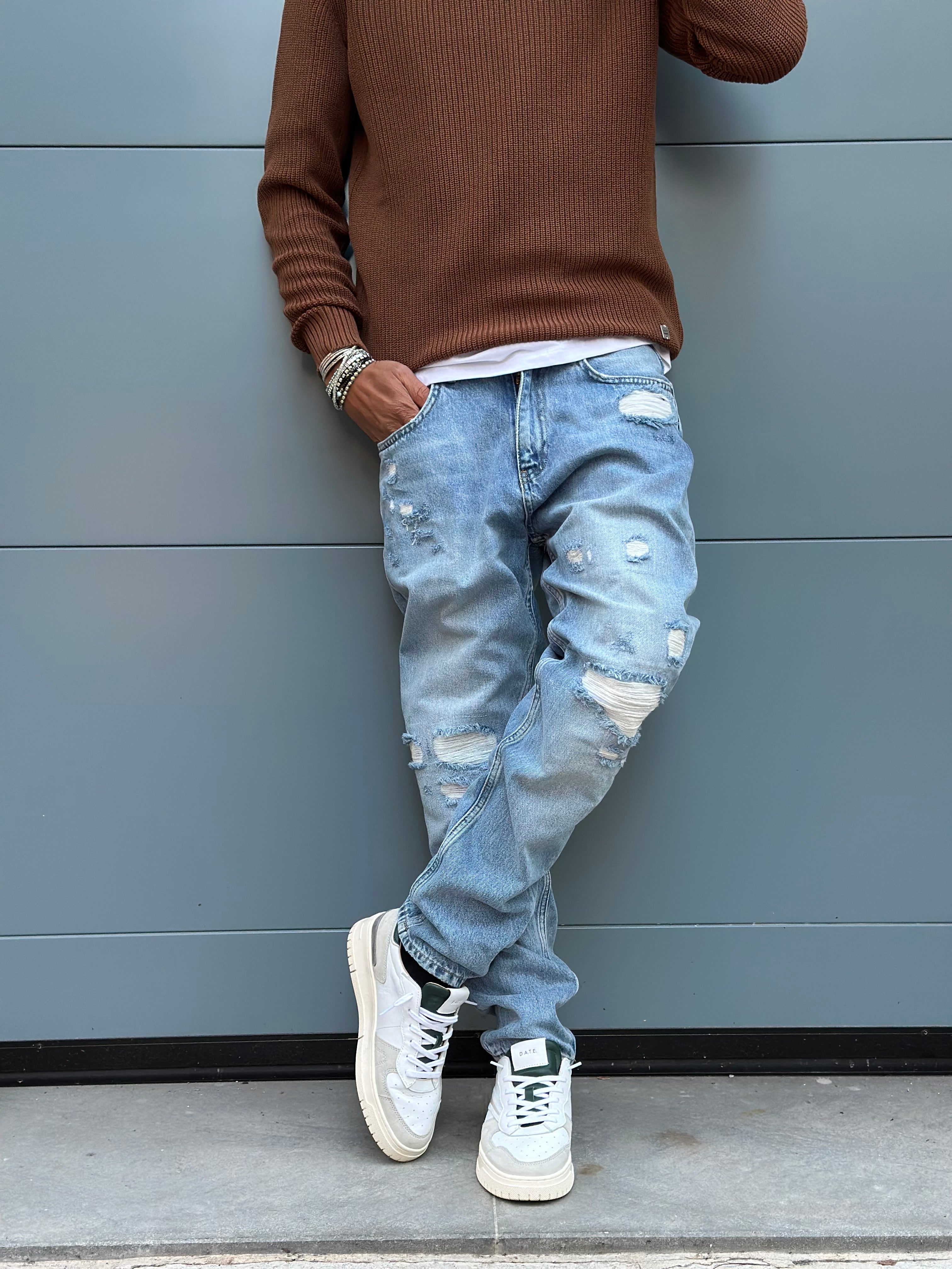 Pont jeans uomo cropped carrot lavaggio chiaro con rotture