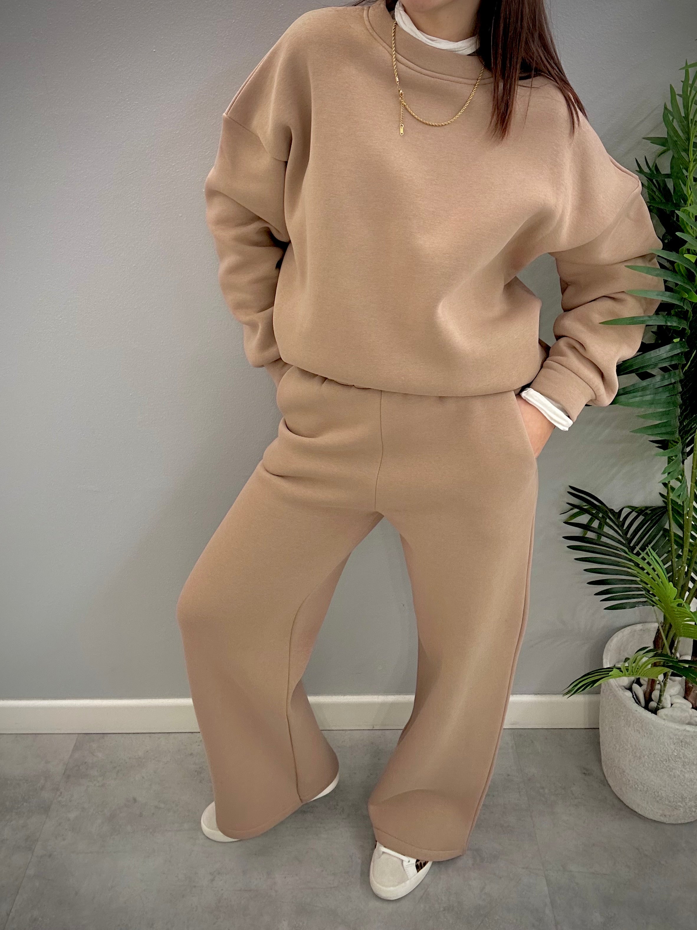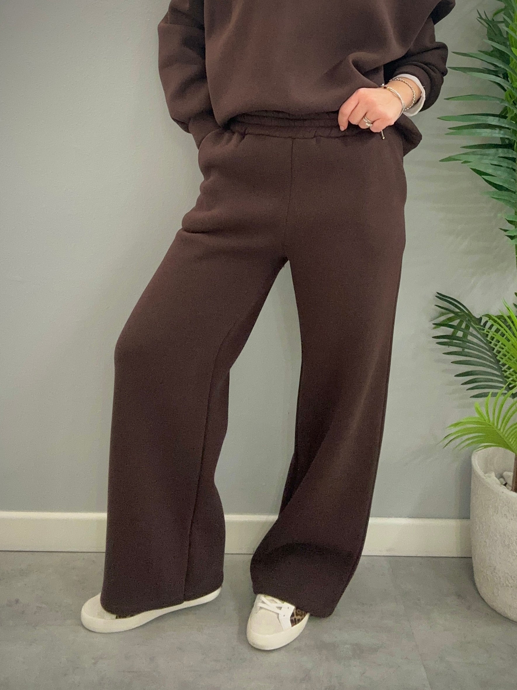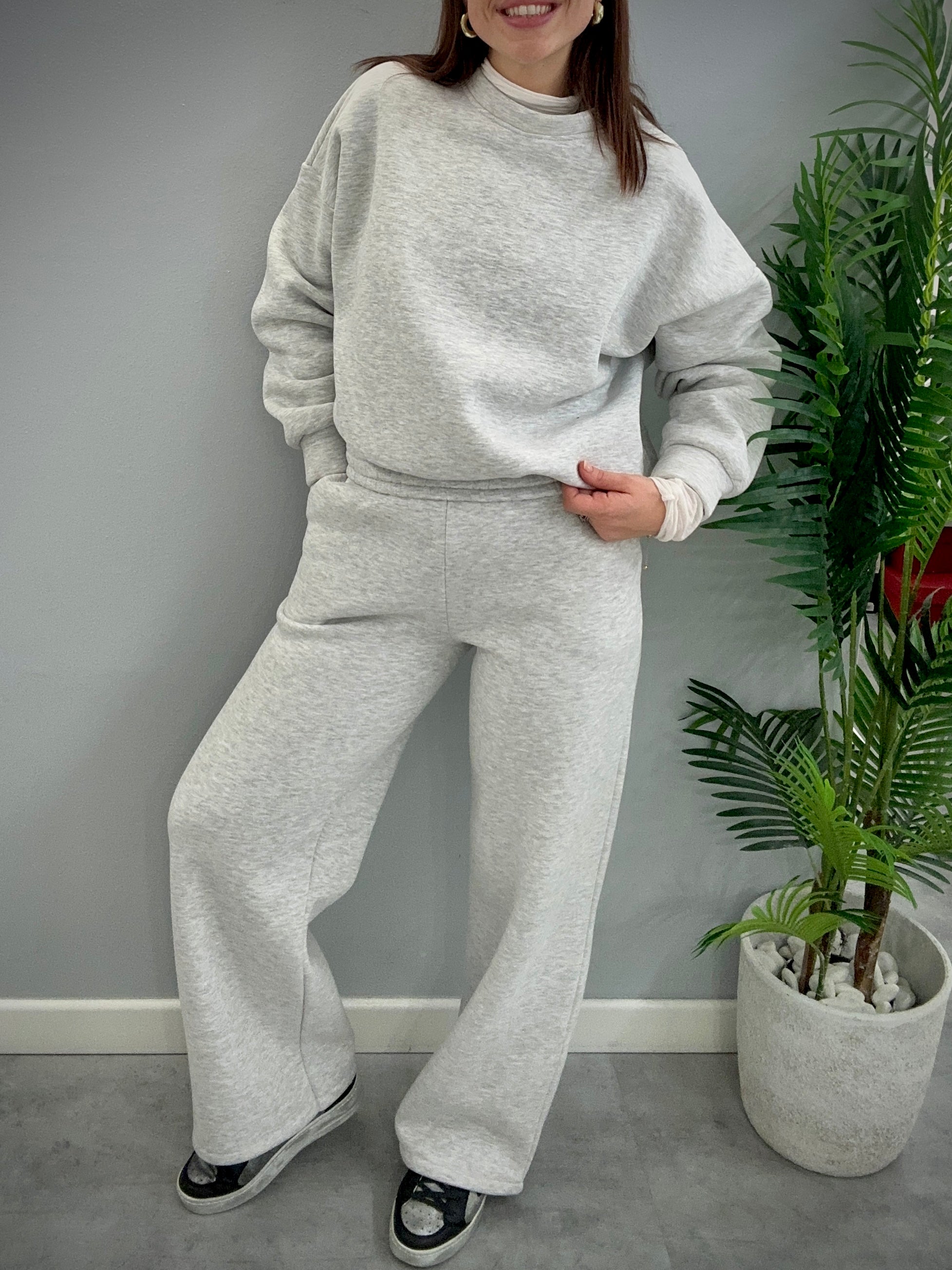 Pantalone tuta donna comodo e caldo gamba a palazzo realizzato in taglia unica veste bene da una tg 40 ad una tg 46 con elastico in vita e tasca laterale a filo