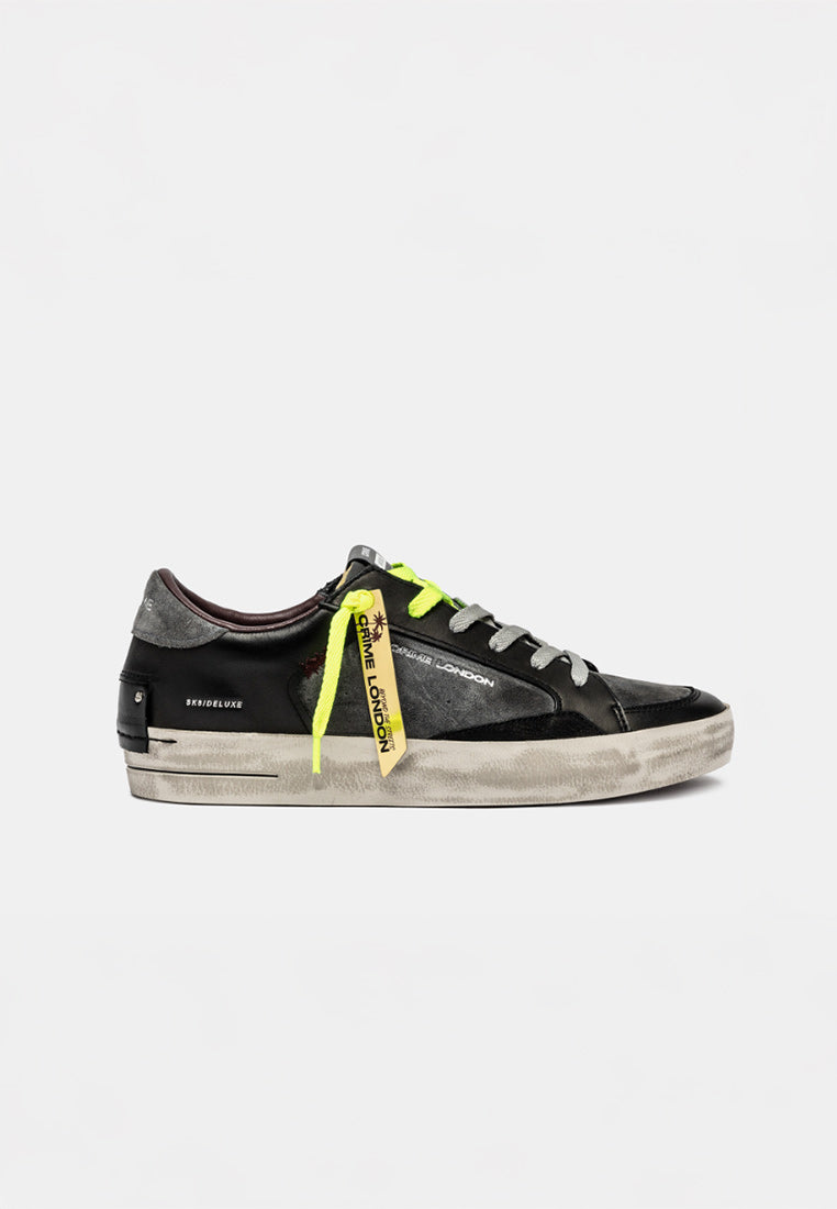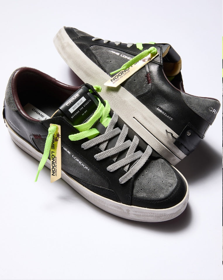 Crime London Sneakers Uomo: stile audace, comfort superiore. Design nero/grigio con doppi lacci (grigio/giallo) per un tocco unico. Perfette per l'uomo che cerca distinzione e qualità. Eleva il tuo look con Crime London.
