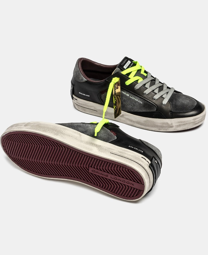 Crime London Sneakers Uomo bassa nero grigio 2 lacci grigio e giallo