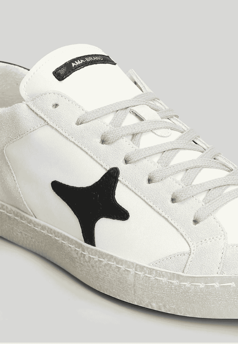 Ama Brand sneakers uomo in pelle bassa modello time bianco logo nero