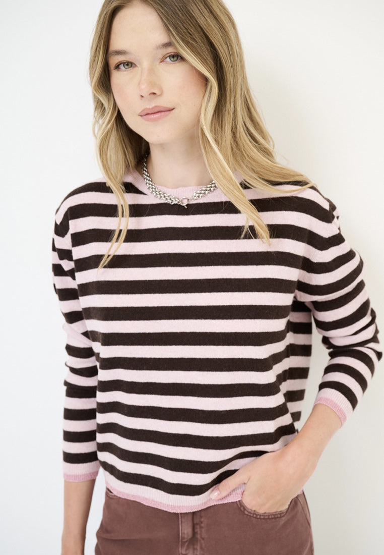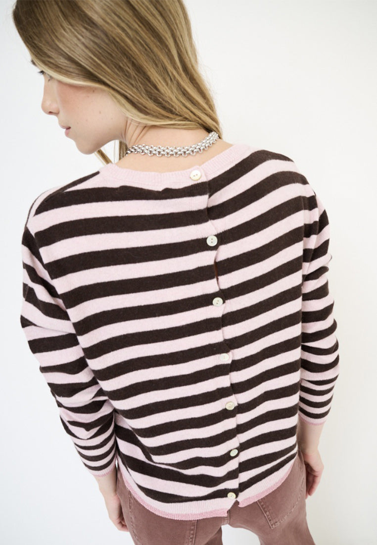 Kikisix maglia con bottoni riga bicolor moro e rosa bordi in lurex